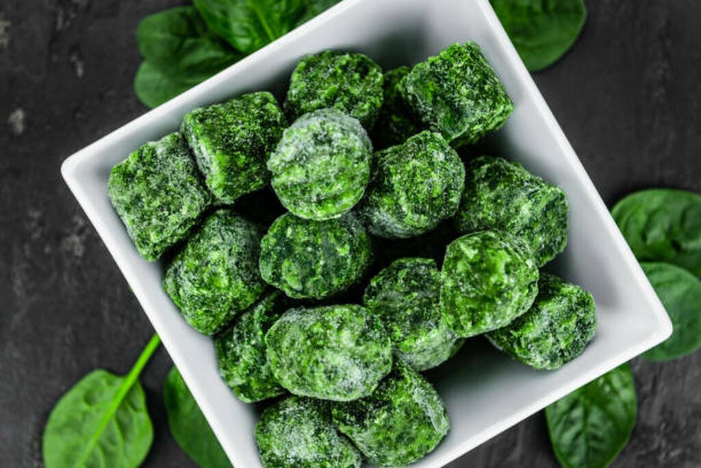 سبانخ مجمدة ومقطعة، غنية بالعناصر الغذائية وسهلة التحضير Chopped frozen spinach, nutritious and easy to use